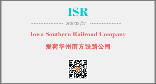 英文缩略词“ISR”经常作为“Iowa Southern Railroad Company”的英文缩写来使用,中文表示:“爱荷华州南方铁路公司”。本文将详细介绍英文缩写词ISR所代表英文单词,其对应的中文拼音、详细解释以及在英语中的流行度。此外,还有关于缩略词ISR的分类、应用领域及相关应用示例等。