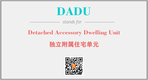 英文缩略词“DADU”经常作为“Detached Accessory Dwelling Unit”的英文缩写来使用,中文表示:“独立附属住宅单元”。本文将详细介绍英文缩写词DADU所代表英文单词,其对应的中文拼音、详细解释以及在英语中的流行度。此外,还有关于缩略词DADU的分类、应用领域及相关应用示例等。