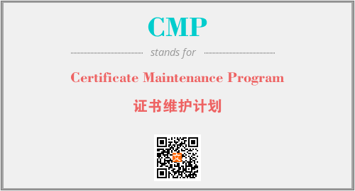 英文缩略词“CMP”经常作为“Certificate Maintenance Program”的英文缩写来使用,中文表示:“证书维护计划”。本文将详细介绍英文缩写词CMP所代表英文单词,其对应的中文拼音、详细解释以及在英语中的流行度。此外,还有关于缩略词CMP的分类、应用领域及相关应用示例等。