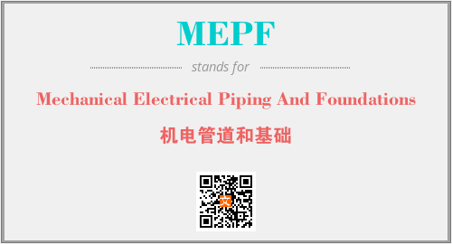 上述内容是“Mechanical Electrical Piping And Foundations”作为“MEPF”的缩写,解释为“机电管道和基础”时的信息,以及英文缩略词MEPF所代表的英文单词,其对应的中文拼音、详细解释以及在英文中的流行度和相关分类、应用领域及应用示例等。