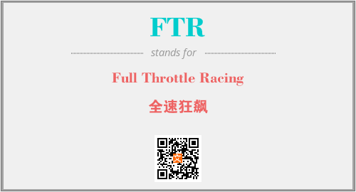 上述内容是“Full Throttle Racing”作为“FTR”的缩写,解释为“全速狂飙”时的信息,以及英文缩略词FTR所代表的英文单词,其对应的中文拼音、详细解释以及在英文中的流行度和相关分类、应用领域及应用示例等。