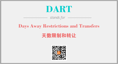 上述内容是“Days Away Restrictions and Transfers”作为“DART”的缩写,解释为“天数限制和转让”时的信息,以及英文缩略词DART所代表的英文单词,其对应的中文拼音、详细解释以及在英文中的流行度和相关分类、应用领域及应用示例等。