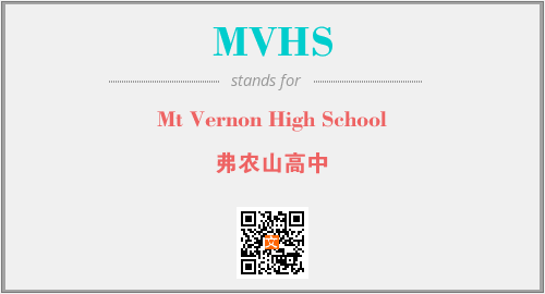 上述内容是“Mt Vernon High School”作为“MVHS”的缩写,解释为“弗农山高中”时的信息,以及英文缩略词MVHS所代表的英文单词,其对应的中文拼音、详细解释以及在英文中的流行度和相关分类、应用领域及应用示例等。