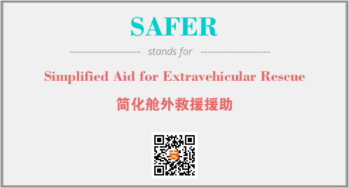 英文缩略词“SAFER”经常作为“Simplified Aid for Extravehicular Rescue”的英文缩写来使用,中文表示:“简化舱外救援援助”。本文将详细介绍英文缩写词SAFER所代表英文单词,其对应的中文拼音、详细解释以及在英语中的流行度。此外,还有关于缩略词SAFER的分类、应用领域及相关应用示例等。