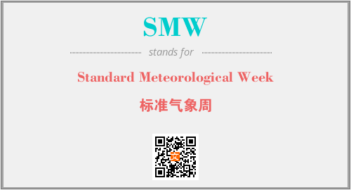 英文缩略词“SMW”经常作为“Standard Meteorological Week”的英文缩写来使用,中文表示:“标准气象周”。本文将详细介绍英文缩写词SMW所代表英文单词,其对应的中文拼音、详细解释以及在英语中的流行度。此外,还有关于缩略词SMW的分类、应用领域及相关应用示例等。
