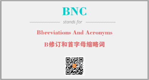 英文缩略词“BNC”经常作为“Bbreviations And Acronyms”的英文缩写来使用,中文表示:“B修订和首字母缩略词”。本文将详细介绍英文缩写词BNC所代表英文单词,其对应的中文拼音、详细解释以及在英语中的流行度。此外,还有关于缩略词BNC的分类、应用领域及相关应用示例等。