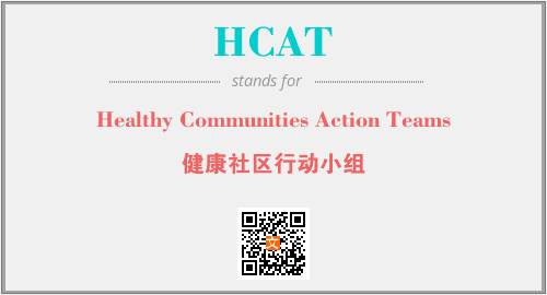 上述内容是“Healthy Communities Action Teams”作为“HCAT”的缩写,解释为“健康社区行动小组”时的信息,以及英文缩略词HCAT所代表的英文单词,其对应的中文拼音、详细解释以及在英文中的流行度和相关分类、应用领域及应用示例等。