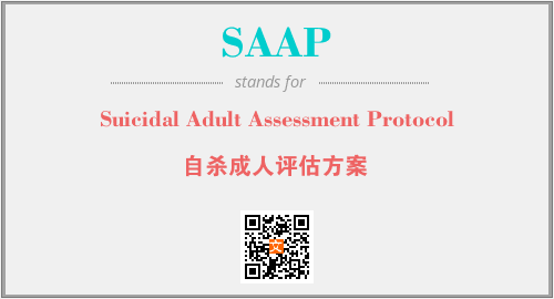 英文缩略词“SAAP”经常作为“Suicidal Adult Assessment Protocol”的英文缩写来使用,中文表示:“自杀成人评估方案”。本文将详细介绍英文缩写词SAAP所代表英文单词,其对应的中文拼音、详细解释以及在英语中的流行度。此外,还有关于缩略词SAAP的分类、应用领域及相关应用示例等。