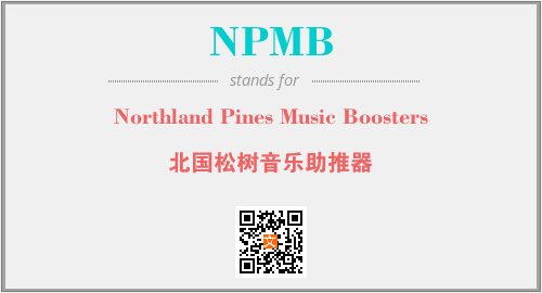 上述内容是“Northland Pines Music Boosters”作为“NPMB”的缩写,解释为“北国松树音乐助推器”时的信息,以及英文缩略词NPMB所代表的英文单词,其对应的中文拼音、详细解释以及在英文中的流行度和相关分类、应用领域及应用示例等。
