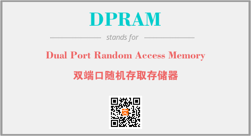 上述内容是“Dual Port Random Access Memory”作为“DPRAM”的缩写,解释为“双端口随机存取存储器”时的信息,以及英文缩略词DPRAM所代表的英文单词,其对应的中文拼音、详细解释以及在英文中的流行度和相关分类、应用领域及应用示例等。