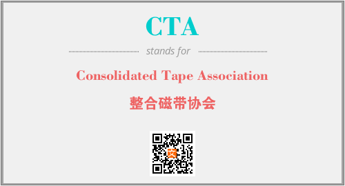 英文缩略词“CTA”经常作为“Consolidated Tape Association”的英文缩写来使用,中文表示:“整合磁带协会”。本文将详细介绍英文缩写词CTA所代表英文单词,其对应的中文拼音、详细解释以及在英语中的流行度。此外,还有关于缩略词CTA的分类、应用领域及相关应用示例等。