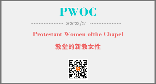 上述内容是“Protestant Women ofthe Chapel”作为“PWOC”的缩写,解释为“教堂的新教女性”时的信息,以及英文缩略词PWOC所代表的英文单词,其对应的中文拼音、详细解释以及在英文中的流行度和相关分类、应用领域及应用示例等。