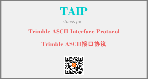 英文缩略词“TAIP”经常作为“Trimble ASCII Interface Protocol”的英文缩写来使用,中文表示:“Trimble ASCII接口协议”。本文将详细介绍英文缩写词TAIP所代表英文单词,其对应的中文拼音、详细解释以及在英语中的流行度。此外,还有关于缩略词TAIP的分类、应用领域及相关应用示例等。