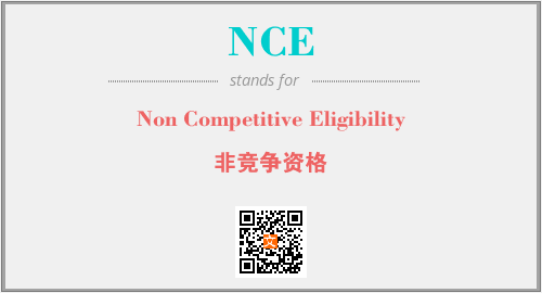 上述内容是“Non Competitive Eligibility”作为“NCE”的缩写,解释为“非竞争资格”时的信息,以及英文缩略词NCE所代表的英文单词,其对应的中文拼音、详细解释以及在英文中的流行度和相关分类、应用领域及应用示例等。