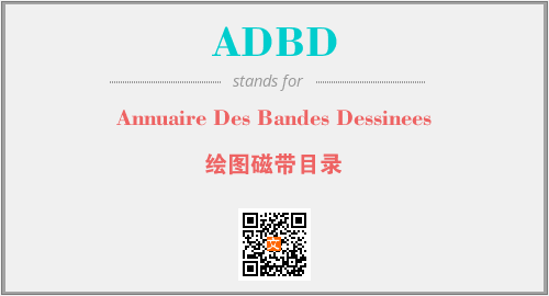 英文缩略词“ADBD”经常作为“Annuaire Des Bandes Dessinees”的英文缩写来使用,中文表示:“绘图磁带目录”。本文将详细介绍英文缩写词ADBD所代表英文单词,其对应的中文拼音、详细解释以及在英语中的流行度。此外,还有关于缩略词ADBD的分类、应用领域及相关应用示例等。