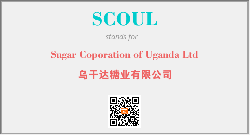 英文缩略词“SCOUL”经常作为“Sugar Coporation of Uganda Ltd”的英文缩写来使用,中文表示:“乌干达糖业有限公司”。本文将详细介绍英文缩写词SCOUL所代表英文单词,其对应的中文拼音、详细解释以及在英语中的流行度。此外,还有关于缩略词SCOUL的分类、应用领域及相关应用示例等。