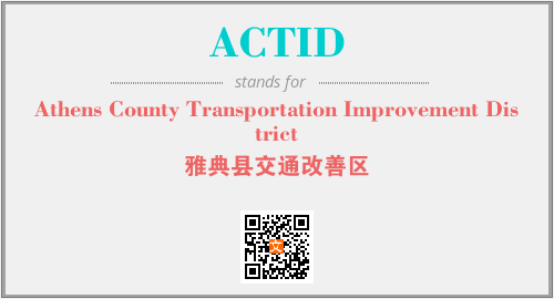 上述内容是“Athens County Transportation Improvement District”作为“ACTID”的缩写,解释为“雅典县交通改善区”时的信息,以及英文缩略词ACTID所代表的英文单词,其对应的中文拼音、详细解释以及在英文中的流行度和相关分类、应用领域及应用示例等。
