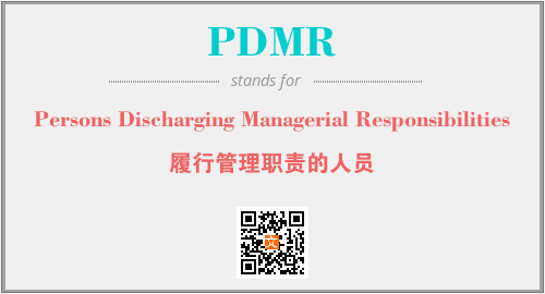 英文缩略词“PDMR”经常作为“Persons Discharging Managerial Responsibilities”的英文缩写来使用,中文表示:“履行管理职责的人员”。本文将详细介绍英文缩写词PDMR所代表英文单词,其对应的中文拼音、详细解释以及在英语中的流行度。此外,还有关于缩略词PDMR的分类、应用领域及相关应用示例等。