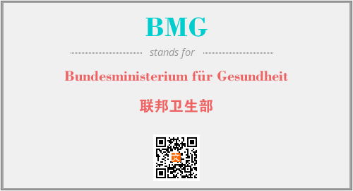上述内容是“Bundesministerium für Gesundheit”作为“BMG”的缩写,解释为“联邦卫生部”时的信息,以及英文缩略词BMG所代表的英文单词,其对应的中文拼音、详细解释以及在英文中的流行度和相关分类、应用领域及应用示例等。