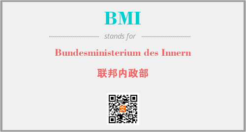英文缩略词“BMI”经常作为“Bundesministerium des Innern”的英文缩写来使用,中文表示:“联邦内政部”。本文将详细介绍英文缩写词BMI所代表英文单词,其对应的中文拼音、详细解释以及在英语中的流行度。此外,还有关于缩略词BMI的分类、应用领域及相关应用示例等。
