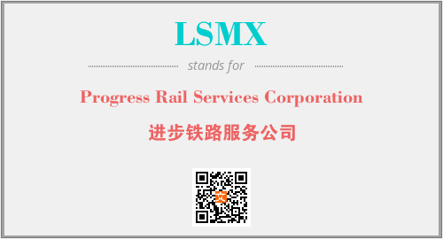 上述内容是“Progress Rail Services Corporation”作为“LSMX”的缩写,解释为“进步铁路服务公司”时的信息,以及英文缩略词LSMX所代表的英文单词,其对应的中文拼音、详细解释以及在英文中的流行度和相关分类、应用领域及应用示例等。