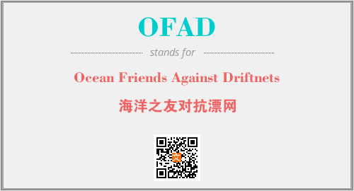 上述内容是“Ocean Friends Against Driftnets”作为“OFAD”的缩写,解释为“海洋之友对抗漂网”时的信息,以及英文缩略词OFAD所代表的英文单词,其对应的中文拼音、详细解释以及在英文中的流行度和相关分类、应用领域及应用示例等。