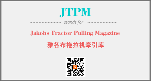 以上为Jakobs Tractor Pulling Magazine英文缩略词JTPM的中文解释,以及该英文缩写在英语的流行度、分类和应用领域方面的信息。