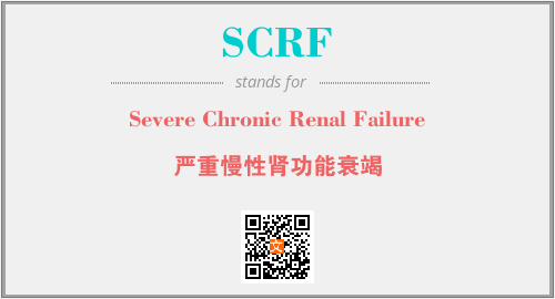 英文缩略词“SCRF”经常作为“Severe Chronic Renal Failure”的英文缩写来使用,中文表示:“严重慢性肾功能衰竭”。本文将详细介绍英文缩写词SCRF所代表英文单词,其对应的中文拼音、详细解释以及在英语中的流行度。此外,还有关于缩略词SCRF的分类、应用领域及相关应用示例等。