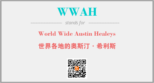 英文缩略词“WWAH”经常作为“World Wide Austin Healeys”的英文缩写来使用,中文表示:“世界各地的奥斯汀·希利斯”。本文将详细介绍英文缩写词WWAH所代表英文单词,其对应的中文拼音、详细解释以及在英语中的流行度。此外,还有关于缩略词WWAH的分类、应用领域及相关应用示例等。