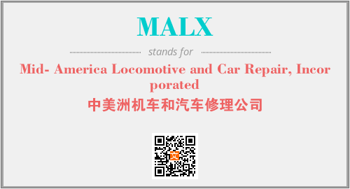 上述内容是“Mid- America Locomotive and Car Repair, Incorporated”作为“MALX”的缩写,解释为“中美洲机车和汽车修理公司”时的信息,以及英文缩略词MALX所代表的英文单词,其对应的中文拼音、详细解释以及在英文中的流行度和相关分类、应用领域及应用示例等。