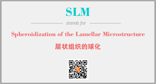 英文缩略词“SLM”经常作为“Spheroidization of the Lamellar Microstructure”的英文缩写来使用,中文表示:“层状组织的球化”。本文将详细介绍英文缩写词SLM所代表英文单词,其对应的中文拼音、详细解释以及在英语中的流行度。此外,还有关于缩略词SLM的分类、应用领域及相关应用示例等。