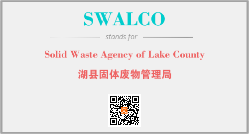 英文缩略词“SWALCO”经常作为“Solid Waste Agency of Lake County”的英文缩写来使用,中文表示:“湖县固体废物管理局”。本文将详细介绍英文缩写词SWALCO所代表英文单词,其对应的中文拼音、详细解释以及在英语中的流行度。此外,还有关于缩略词SWALCO的分类、应用领域及相关应用示例等。