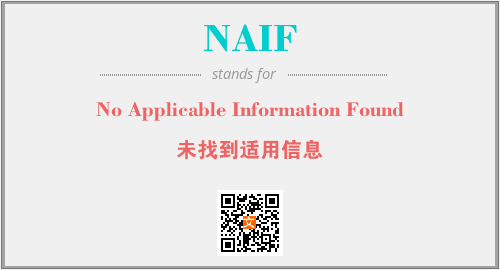 上述内容是“No Applicable Information Found”作为“NAIF”的缩写,解释为“未找到适用信息”时的信息,以及英文缩略词NAIF所代表的英文单词,其对应的中文拼音、详细解释以及在英文中的流行度和相关分类、应用领域及应用示例等。