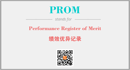 上述内容是“Performance Register of Merit”作为“PROM”的缩写,解释为“绩效优异记录”时的信息,以及英文缩略词PROM所代表的英文单词,其对应的中文拼音、详细解释以及在英文中的流行度和相关分类、应用领域及应用示例等。