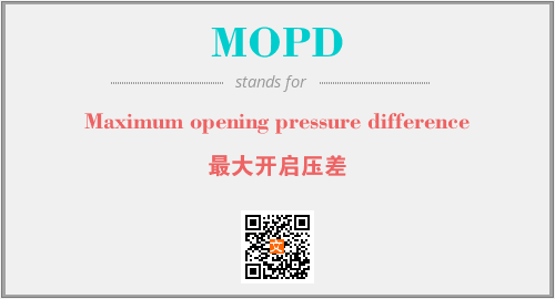 上述内容是“Maximum opening pressure difference”作为“MOPD”的缩写,解释为“最大开启压差”时的信息,以及英文缩略词MOPD所代表的英文单词,其对应的中文拼音、详细解释以及在英文中的流行度和相关分类、应用领域及应用示例等。