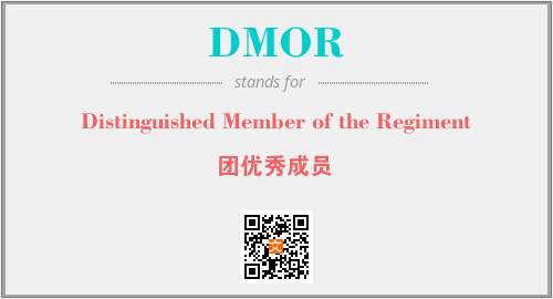 英文缩略词“DMOR”经常作为“Distinguished Member of the Regiment”的英文缩写来使用,中文表示:“团优秀成员”。本文将详细介绍英文缩写词DMOR所代表英文单词,其对应的中文拼音、详细解释以及在英语中的流行度。此外,还有关于缩略词DMOR的分类、应用领域及相关应用示例等。