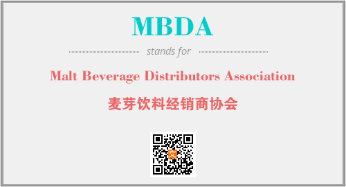 英文缩略词“MBDA”经常作为“Malt Beverage Distributors Association”的英文缩写来使用,中文表示:“麦芽饮料经销商协会”。本文将详细介绍英文缩写词MBDA所代表英文单词,其对应的中文拼音、详细解释以及在英语中的流行度。此外,还有关于缩略词MBDA的分类、应用领域及相关应用示例等。