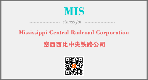 上述内容是“Mississippi Central Railroad Corporation”作为“MIS”的缩写,解释为“密西西比中央铁路公司”时的信息,以及英文缩略词MIS所代表的英文单词,其对应的中文拼音、详细解释以及在英文中的流行度和相关分类、应用领域及应用示例等。