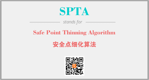 上述内容是“Safe Point Thinning Algorithm”作为“SPTA”的缩写,解释为“安全点细化算法”时的信息,以及英文缩略词SPTA所代表的英文单词,其对应的中文拼音、详细解释以及在英文中的流行度和相关分类、应用领域及应用示例等。