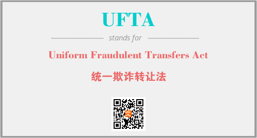 上述内容是“Uniform Fraudulent Transfers Act”作为“UFTA”的缩写,解释为“统一欺诈转让法”时的信息,以及英文缩略词UFTA所代表的英文单词,其对应的中文拼音、详细解释以及在英文中的流行度和相关分类、应用领域及应用示例等。