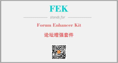 上述内容是“Forum Enhancer Kit”作为“FEK”的缩写,解释为“论坛增强套件”时的信息,以及英文缩略词FEK所代表的英文单词,其对应的中文拼音、详细解释以及在英文中的流行度和相关分类、应用领域及应用示例等。