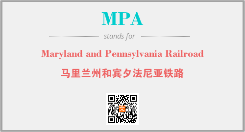 上述内容是“Maryland and Pennsylvania Railroad”作为“MPA”的缩写,解释为“马里兰州和宾夕法尼亚铁路”时的信息,以及英文缩略词MPA所代表的英文单词,其对应的中文拼音、详细解释以及在英文中的流行度和相关分类、应用领域及应用示例等。