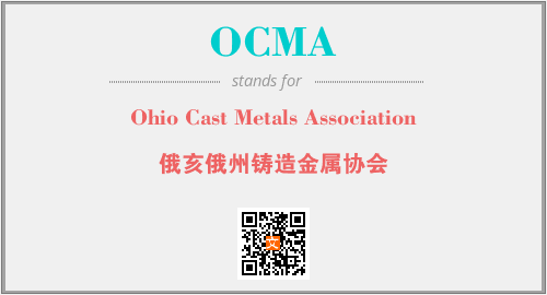 英文缩略词“OCMA”经常作为“Ohio Cast Metals Association”的英文缩写来使用,中文表示:“俄亥俄州铸造金属协会”。本文将详细介绍英文缩写词OCMA所代表英文单词,其对应的中文拼音、详细解释以及在英语中的流行度。此外,还有关于缩略词OCMA的分类、应用领域及相关应用示例等。