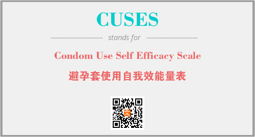 上述内容是“Condom Use Self Efficacy Scale”作为“CUSES”的缩写,解释为“避孕套使用自我效能量表”时的信息,以及英文缩略词CUSES所代表的英文单词,其对应的中文拼音、详细解释以及在英文中的流行度和相关分类、应用领域及应用示例等。