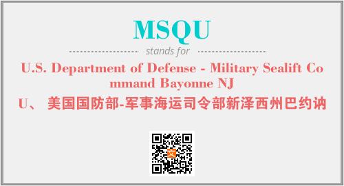 上述内容是“U.S. Department of Defense - Military Sealift Command Bayonne NJ”作为“MSQU”的缩写,解释为“U、 美国国防部-军事海运司令部新泽西州巴约讷”时的信息,以及英文缩略词MSQU所代表的英文单词,其对应的中文拼音、详细解释以及在英文中的流行度和相关分类、应用领域及应用示例等。