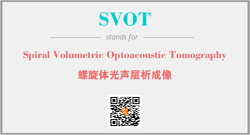 上述内容是“Spiral Volumetric Optoacoustic Tomography”作为“SVOT”的缩写,解释为“螺旋体光声层析成像”时的信息,以及英文缩略词SVOT所代表的英文单词,其对应的中文拼音、详细解释以及在英文中的流行度和相关分类、应用领域及应用示例等。