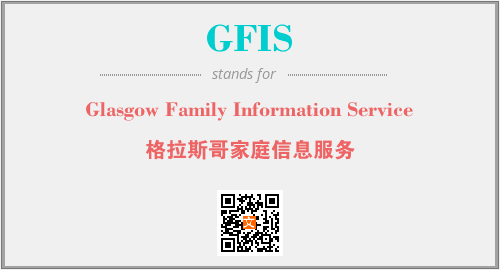 上述内容是“Glasgow Family Information Service”作为“GFIS”的缩写,解释为“格拉斯哥家庭信息服务”时的信息,以及英文缩略词GFIS所代表的英文单词,其对应的中文拼音、详细解释以及在英文中的流行度和相关分类、应用领域及应用示例等。