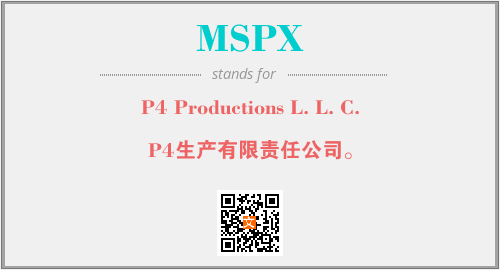 上述内容是“P4 Productions L. L. C.”作为“MSPX”的缩写,解释为“P4生产有限责任公司。”时的信息,以及英文缩略词MSPX所代表的英文单词,其对应的中文拼音、详细解释以及在英文中的流行度和相关分类、应用领域及应用示例等。