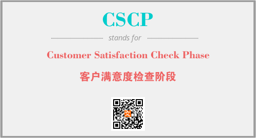 英文缩略词“CSCP”经常作为“Customer Satisfaction Check Phase”的英文缩写来使用,中文表示:“客户满意度检查阶段”。本文将详细介绍英文缩写词CSCP所代表英文单词,其对应的中文拼音、详细解释以及在英语中的流行度。此外,还有关于缩略词CSCP的分类、应用领域及相关应用示例等。