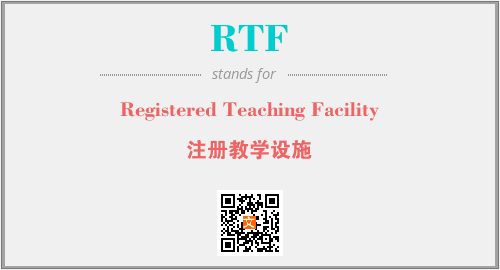 以上为Registered Teaching Facility英文缩略词RTF的中文解释,以及该英文缩写在英语的流行度、分类和应用领域方面的信息。